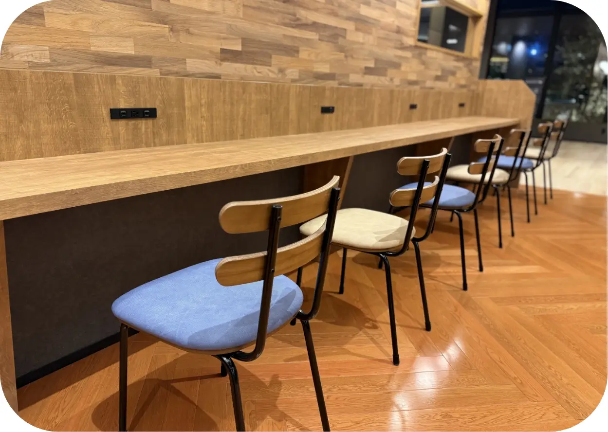 おひとりでも気軽に利用できるカウンター席、仲間とゆっくり過ごせるテーブル席、ファミリーやグループでくつろげる座敷席など、多彩なスタイルでお楽しみいただけます。