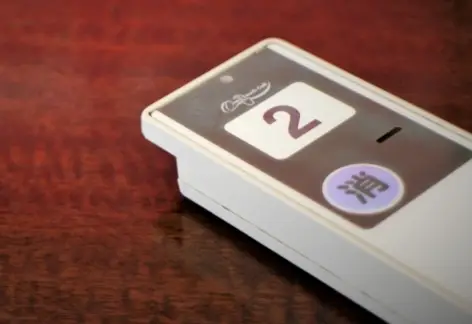 発行された食券を食券受取カウンターにお渡しください。呼び出しベルをお渡ししますので、お席にてお待ちください。