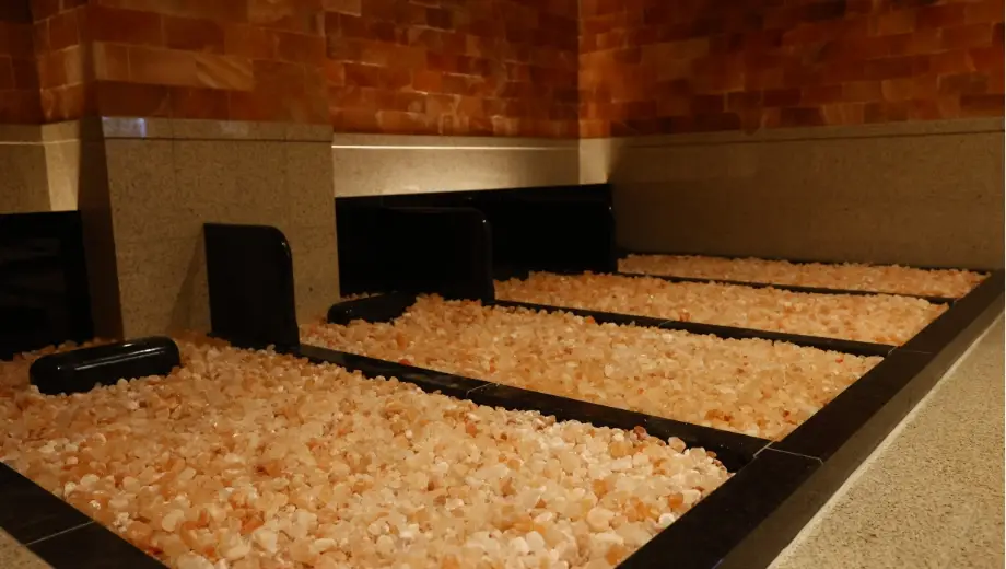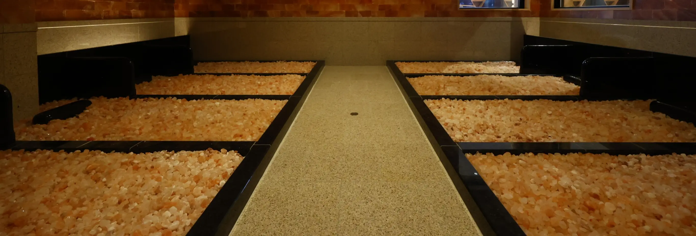 長い年月をかけて結晶化した岩塩を使用。鉄分やカリウムなど、豊富なミネラルを含んだ空間で心身を癒やします。