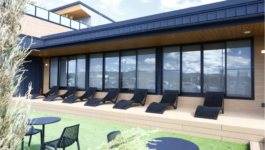 人工芝が敷かれた芝生エリアでは裸足でリラックスしたり、ヨガやストレッチにもご利用いただけます。