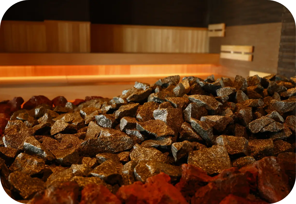 遠赤外線とマイナスイオンを放つ天然鉱石を贅沢に使用した岩盤浴。