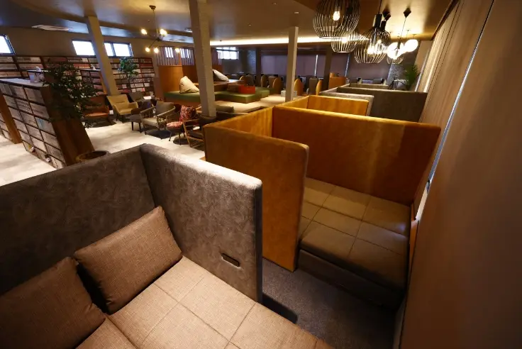 静かに本を読むのも、仲間と語らうのも、自分のペースでリラックスできるエリアです。