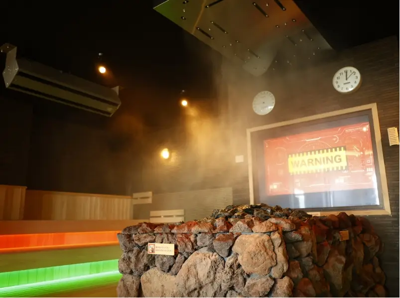 個性豊かな岩盤浴ルームや迫力のアトラクションサウナ、そして仕上げのクールルームやテラスまで。