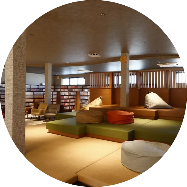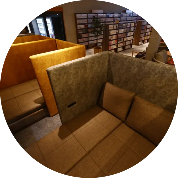 静かに本を読むのも、仲間と語らうのも、自分のペースでリラックスできるエリアです。