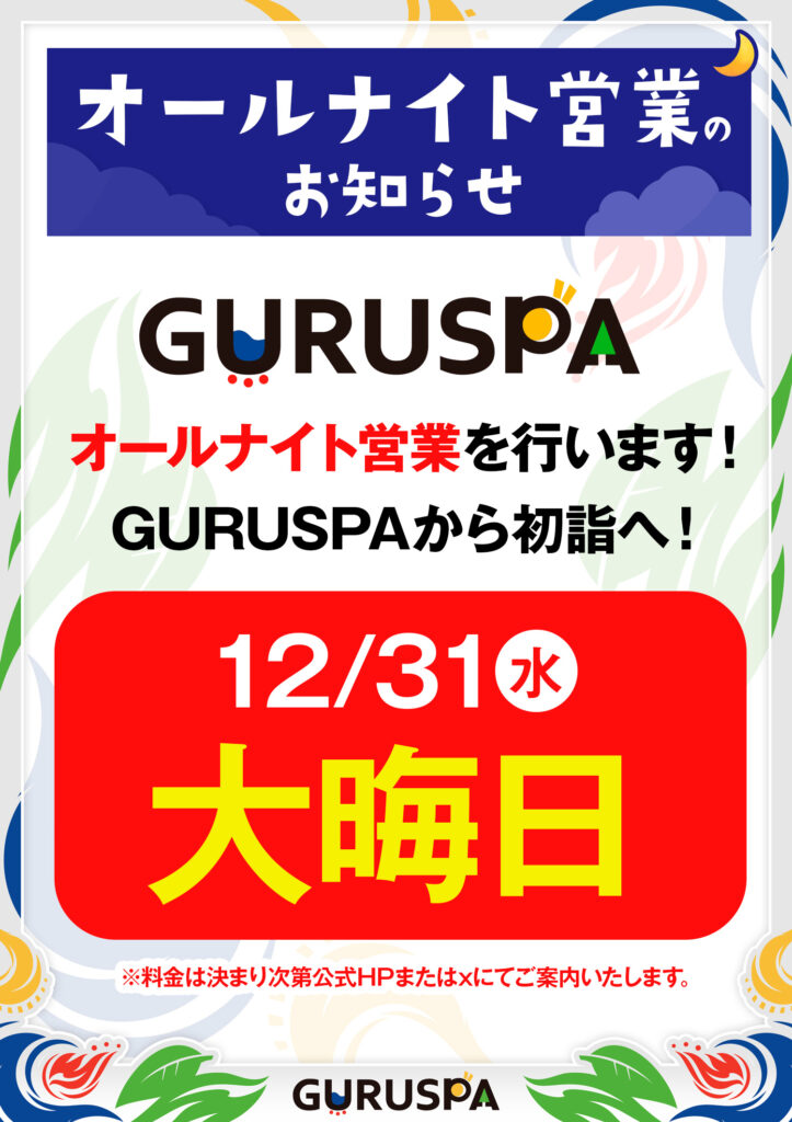 この度、大晦日に特別にオールナイト営業を実施いたします!