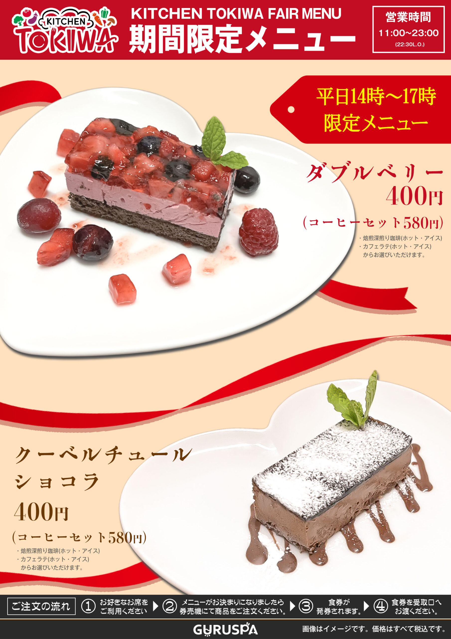 キッチンTOKIWAにて平日の14時~17時限定メニュー登場!!