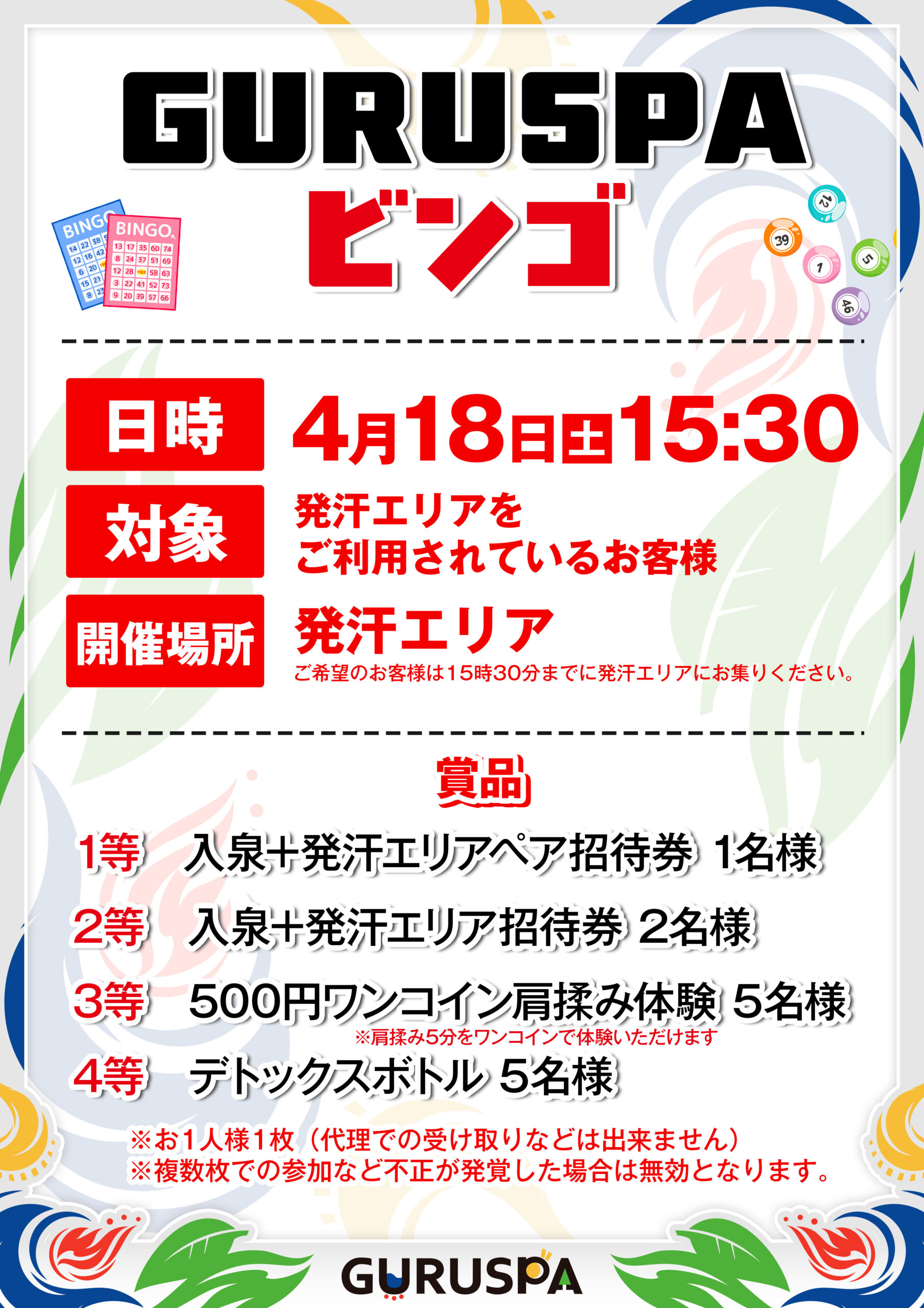4月18日(土)ビンゴ大会を開催いたします。