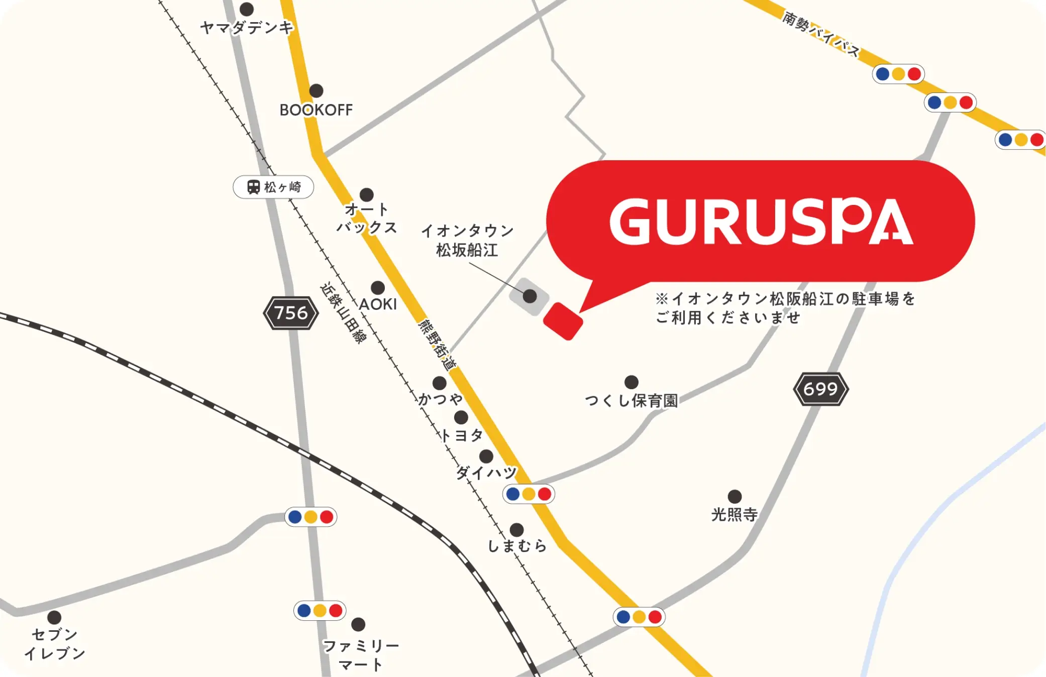 名古屋・大阪方面の帰路に便利な「松阪IC」や、国道23号もすぐ近くでお車でのアクセスが抜群です。
