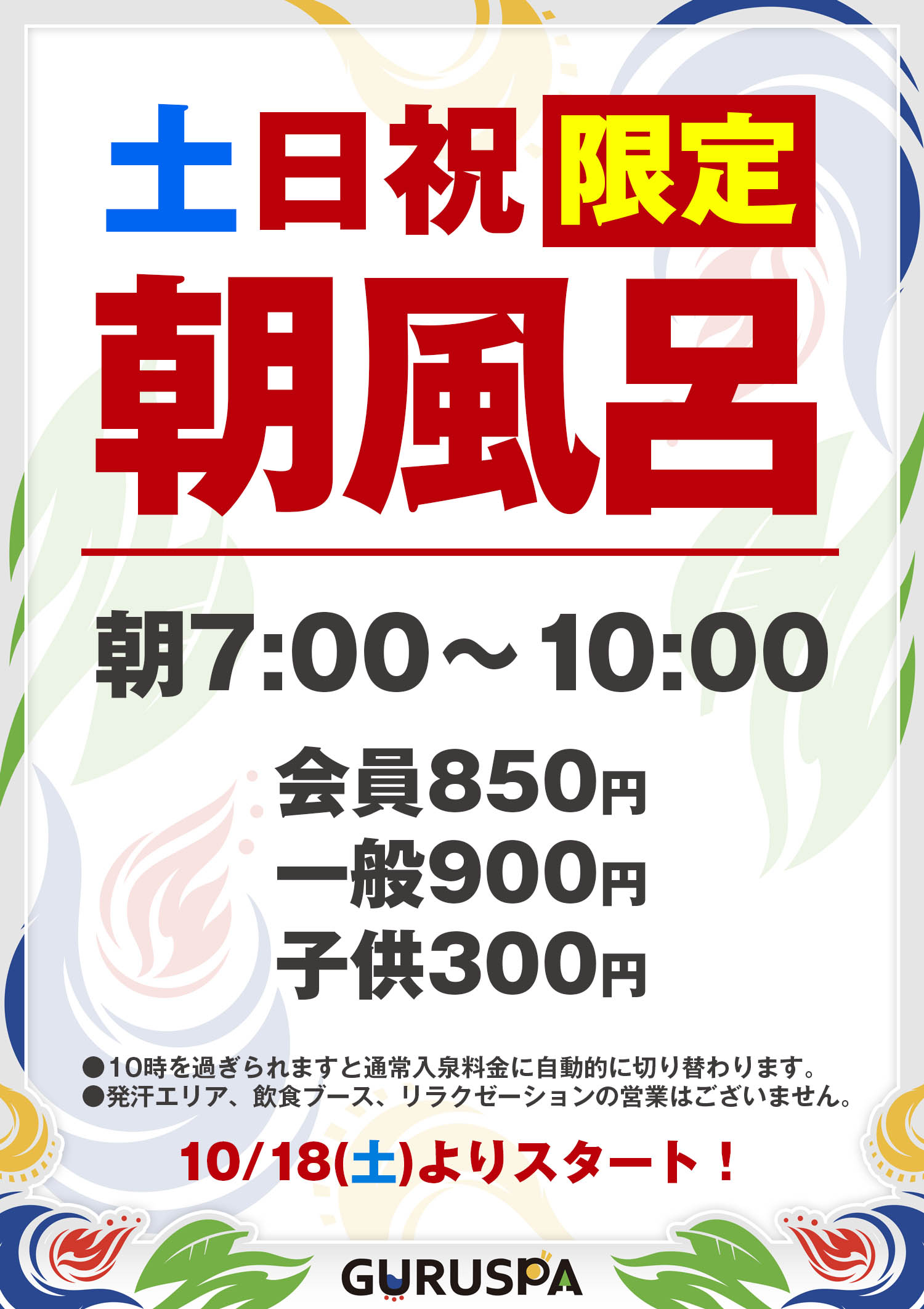 10/18(土)より、朝風呂をスタートさせていただきます。